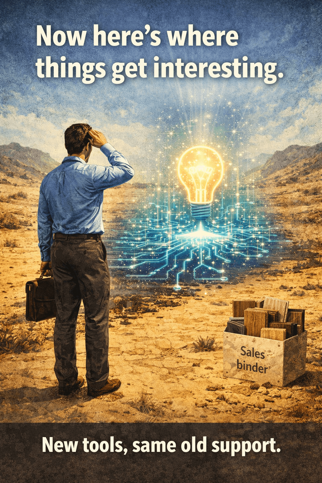 So the very people expected to create growth are still carrying binders and door samples.